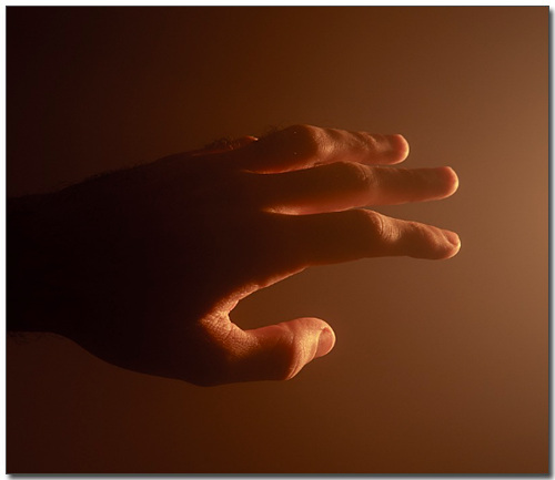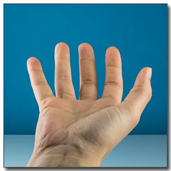- 한 손의 손가락을 펴서, 손바닥을 위로 향하게 합니다.
