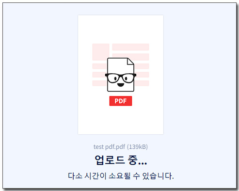 업로드 중이라는 메시지가 나타나는데 PDF 파일 용량에 따라 시간이 소요될 수 있습니다.