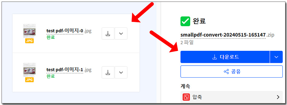 변환이 완료되면 다운로드 아이콘을 클릭하여 파일을 다운로드하시면 아주 간단하게 변환이 가능합니다.