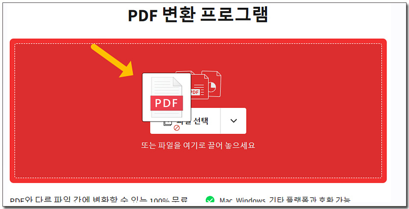마우스를 이용하여 PDF파일을 끌어 화면 파일 선택에 놓으면 됩니다. 아주 간단한 방법입니다.