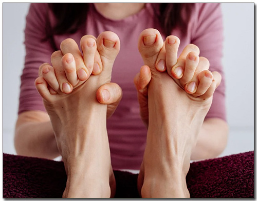 ● 족부 피부염: 습진, 아토피 피부염, 백선 등의 피부 질환이 발가락에 발생하는 경우입니다. 발가락에 가려움증, 발적, 염증 등의 증상이 나타납니다.