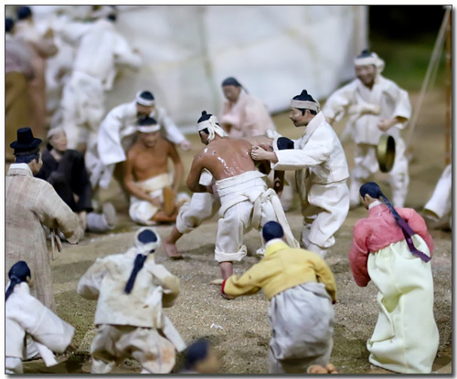 옛날에는 단오날마다 마을마다 씨름 대회가 열렸어요. 씨름은 젊은이들의 건강을 시험하고 단결심을 기르는 용도로 즐겼습니다.