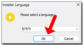 설치가 시작되면 언어를 확인하고 OK를 클릭해 주세요.