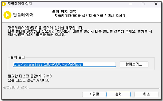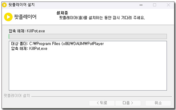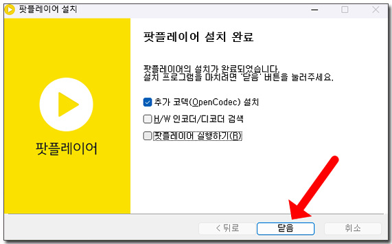 팟플레이어 설치가 시작되고 설치가 완료되면 닫음을 클릭하면 설치가 종료됩니다.