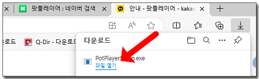 팟플레이어 다운로드가 완료되면 파일 열기를 클릭하여 설치를 진행합니다.