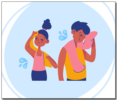 • 땀 제거: 땀을 많이 흘린 후에는 깨끗한 물로 씻어내고, 피부를 청결하게 유지합니다.